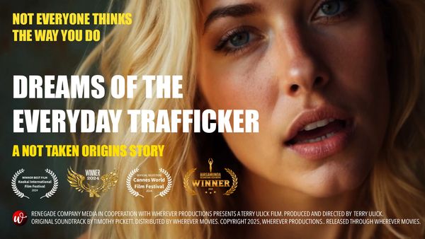 In 2024, Wherever Movies released “NOT TAKEN: ORIGINS” on Amazon Prime. In 2025 the movie was updated with new content and released as “Dreams of the Everyday Trafficker” and is available far beyond Amazon Prime — and right here on Wherever Movies. See how it all began with this 11-Time Best Feature Film award winner.